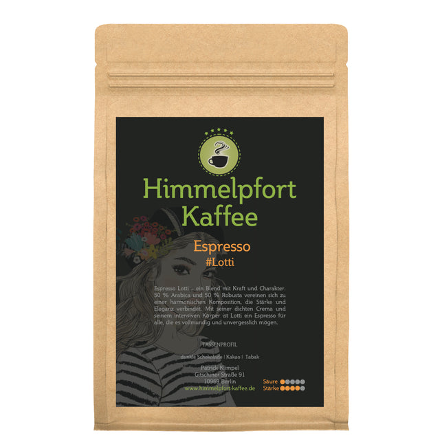 Himmelpfort Kaffee Espresso „Lotti“ ist ein Espresso mit Haltung: kraftvoll, charakterstark und zuverlässig – für jeden Tag und jeden Anspruch.